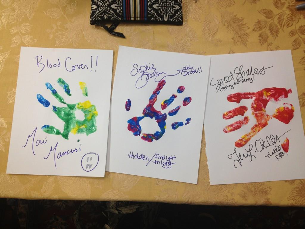 After signing books we were asked to do a bit of an arts and crafts project--handprints to hang on the store's wall! It was messy but fun and a lot of laughter ensued.